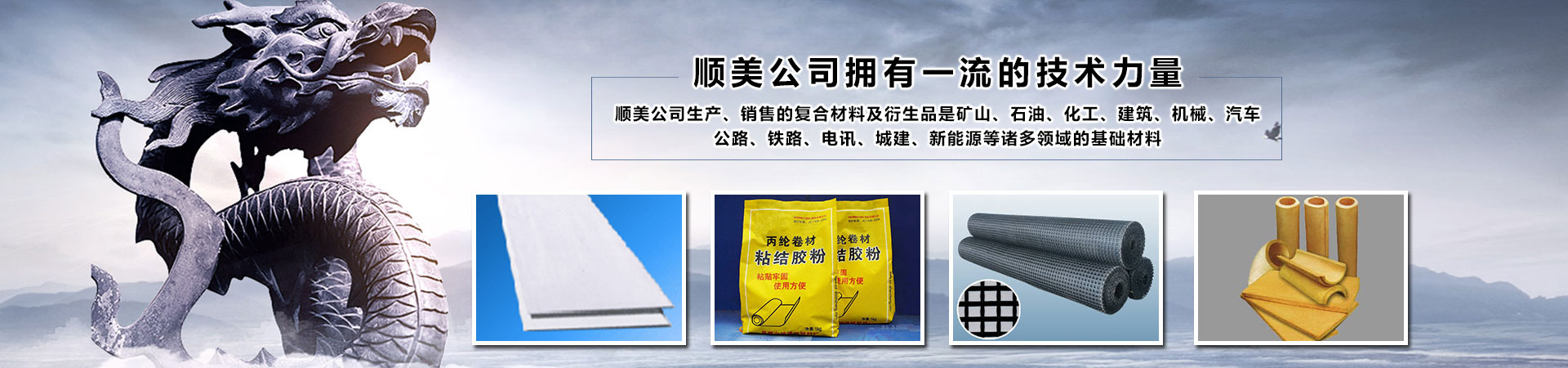 新疆順美新材料有限公司,是成都順美國際貿易有限公司駐新疆的分公司。順美國際貿易有限公司(以下簡稱順美公司)成都總部成立于1998年,分公司成立于2008年。是一家科技型研發(fā)、生產及國內國際貿易型企業(yè)。公司主要以研發(fā)、生產、銷售各種新材料、化工、建材、防水、防腐、防火、保溫材料、土工材料、橋梁加固材料及國際國內貿易為主。公司下屬員工二百余人,并擁有一支具有高素質從事新材料、化工、建材及國際貿易數十年經驗的研發(fā)、生產和銷售團隊!順美公司擁有好的技術力量,嚴格的質量檢驗標準和先進的生產設備,實行科學化的管理,產品擁有自主知識產權,涵蓋多項國家專利,并嚴格按照標準進行生產、加工和銷售。順美公司生產、銷售的復合材料及衍生品是礦山、石油、化工、建筑、機械、汽車、公路、鐵路、電訊、城建、新能源等諸多領域的基礎材料。順美公司經過多年的累積和發(fā)展,現已建立完善的研發(fā)、生產、銷售一條龍服務體系,在產業(yè)鏈銜接、技術、服務、物流、人才聚集等方面成效顯著...